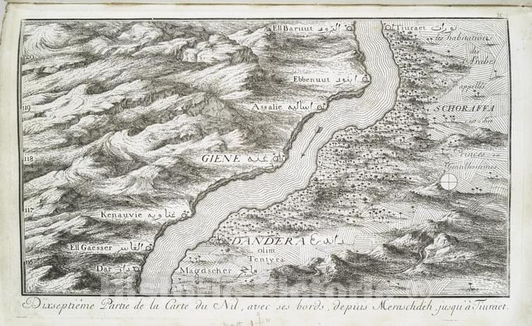 Historic Map - 1780 Egypt, Nubia And Thebes, Nile River, Dixseptieme Partie De La Carte Du Nil, Avec Ses Bords, Depuis Meraschdeh, Jusqu'A Tiuraet.