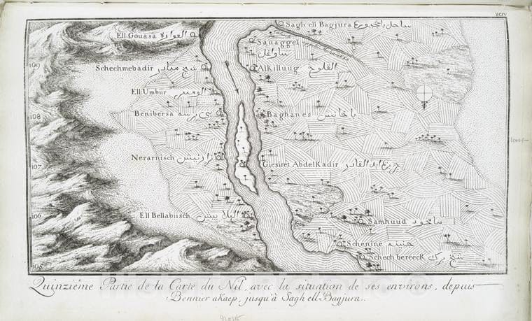 Historic Map - 1780 Egypt, Nubia And Thebes, Nile River, Quinzieme Partie De La Carte Du Nil, Avec La Situation De Ses Environs, Depuis Bennier Akaep - Vintage Wall Art