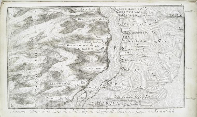 Historic Map - 1780 Egypt, Nubia And Thebes, Nile River, Seizieme Partie De La Carte Du Nil, Depuis Sagh Ell Bagjura, Jusqu'A Meraschdeh.