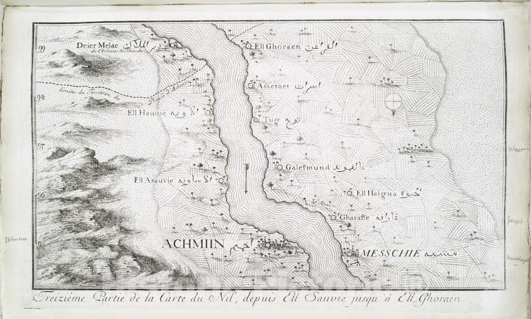 Historic Map - 1780 Egypt, Nubia And Thebes, Nile River, Treizieme Partie De La Carte Du Nil, Depuis Ell Sauvie, Jusqu'A Ell Ghoraen.