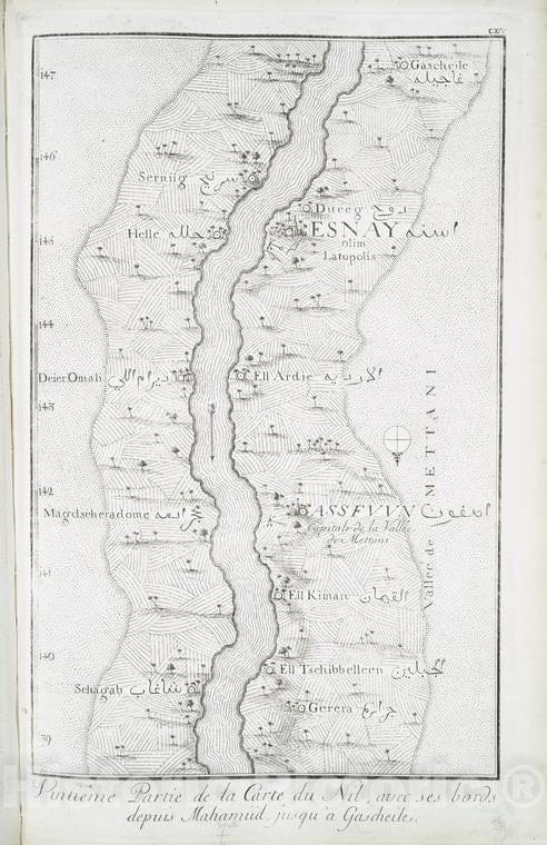 Historic Map - 1780 Egypt, Nubia And Thebes, Nile River, Vin[G] Tieme Partie De La Carte Du Nil, Avec Ses Bords, Depuis Mahamiid, Jusqu'A Gascheile.