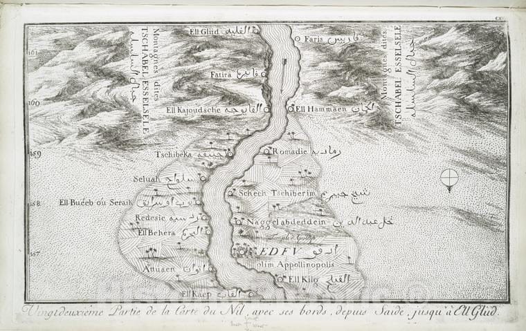 Historic Map - 1780 Egypt, Nubia And Thebes, Nile River, Vingtdeuxieme Partie De La Carte Du Nil, Avec Ses Bords, Depuis Saide, Jusqu'A Ell Gliid.