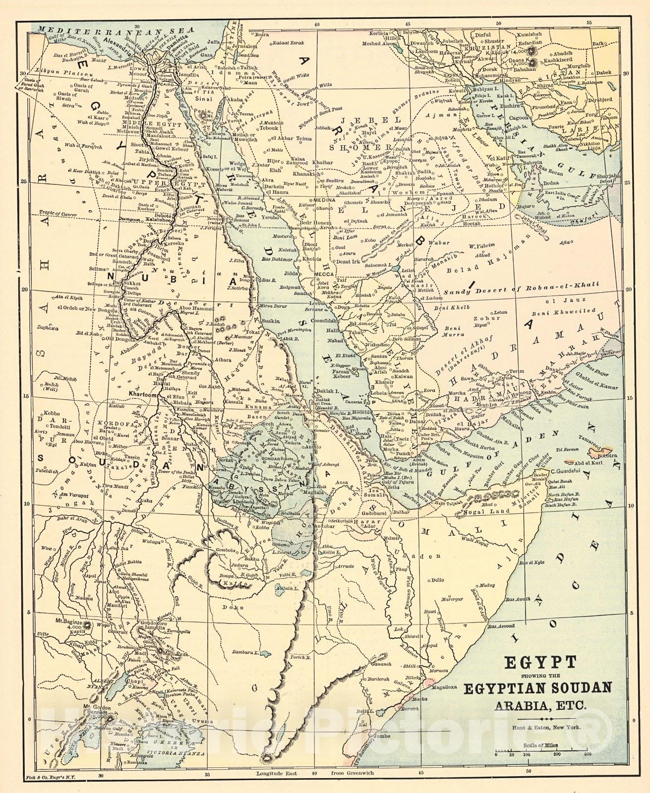 Vintage Map | 1892 Egypt Showing the Egyptian Soudan, Arabia, Ect. | Fisk & Company