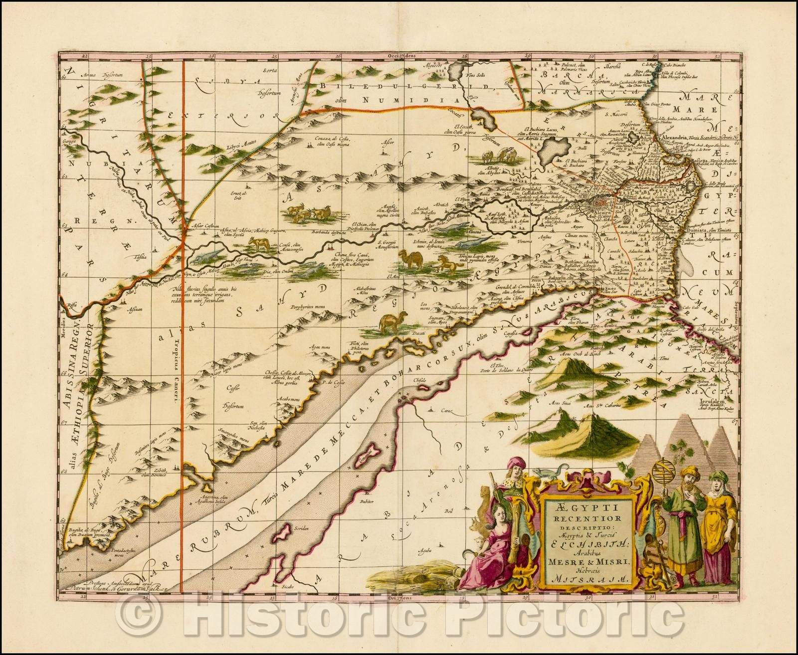 • .Historic Map - Aegypti Recentior Descriptio: Aegyptis & Turcis Elchibith; Arabibus Mesre :: Egypt, Egyptians and Turks Elchibith; Arab Mesre & Misra, 1690 - Vintage Wall Art