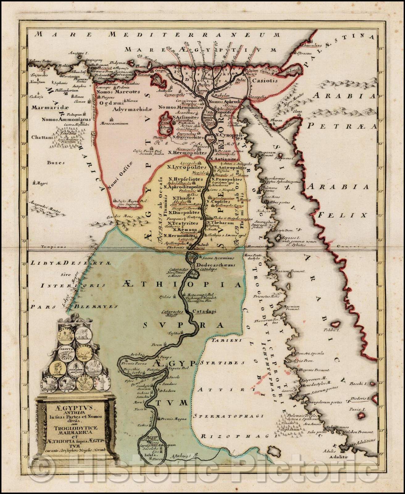 Historic Map - Aegyptus Antiqua In suas Partes et Nomos divisa cum Troglodytice Marmarica et Aethiopia supra Aegyptum, 1718, Christopher Weigel v2