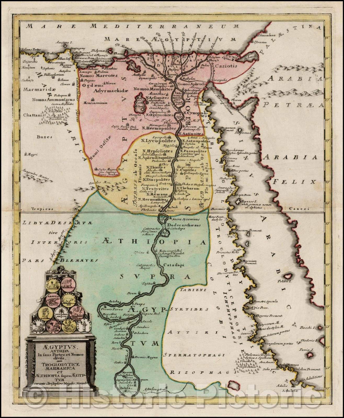 Historic Map - Aegyptus Antiqua In suas Partes et Nomos divisa cum Troglodytice Marmarica et Aethiopia supra Aegyptum, 1718, Christopher Weigel v1