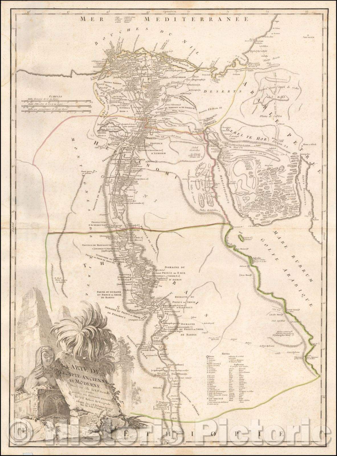 Historic Map - Carte De L'Egypte Ancienne et Moderne Dressee sure Celle du R.P. Sicard et autres, 1790, Charles Francois Delamarche - Vintage Wall Art