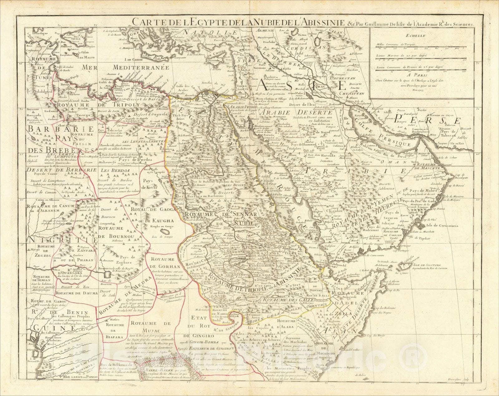 Historic Map : Carte De L'Egypte De La Nubie De L'Abissinie, 1707, 1707, Guillaume De L'Isle, Vintage Wall Art