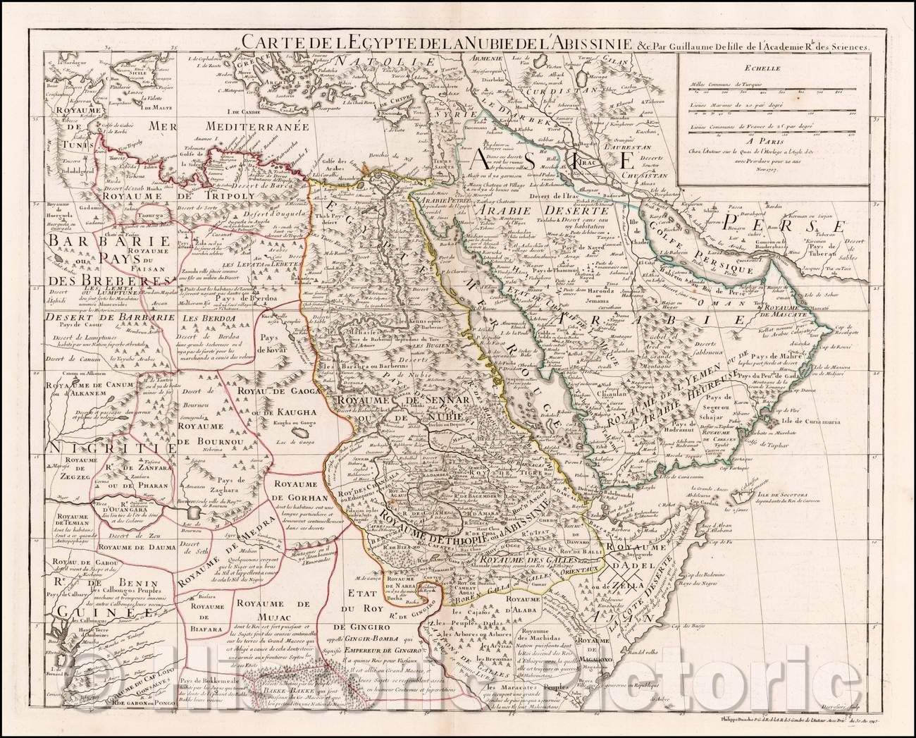 • .Historic Map - Carte de l'Egypte de la Nubie de l'Abissinie, 1745, Philippe Buache - Vintage Wall Art