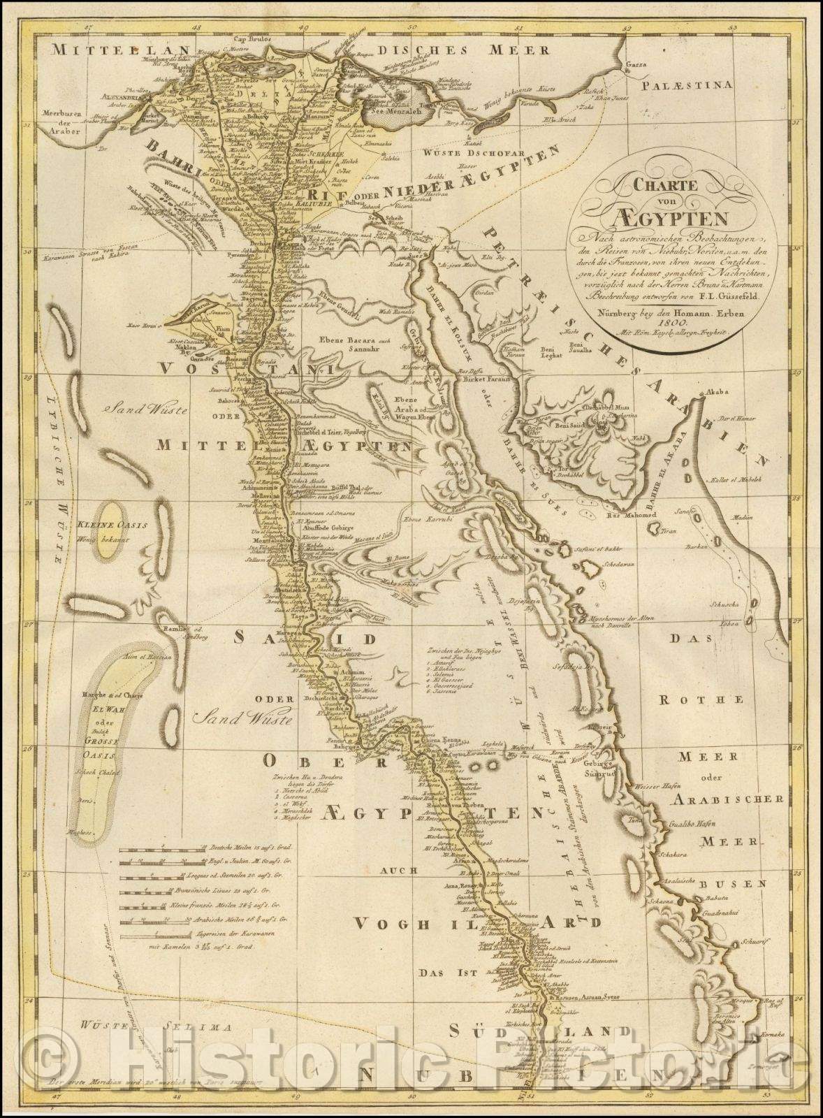 • .Historic Map - Charte von Aegypten Nach astronomischen Beobachtungen, den Reisen von Niebuhr, Norden :: Egypt adn the Nile River to just South of Assuan, 1800 - Vintage Wall Art