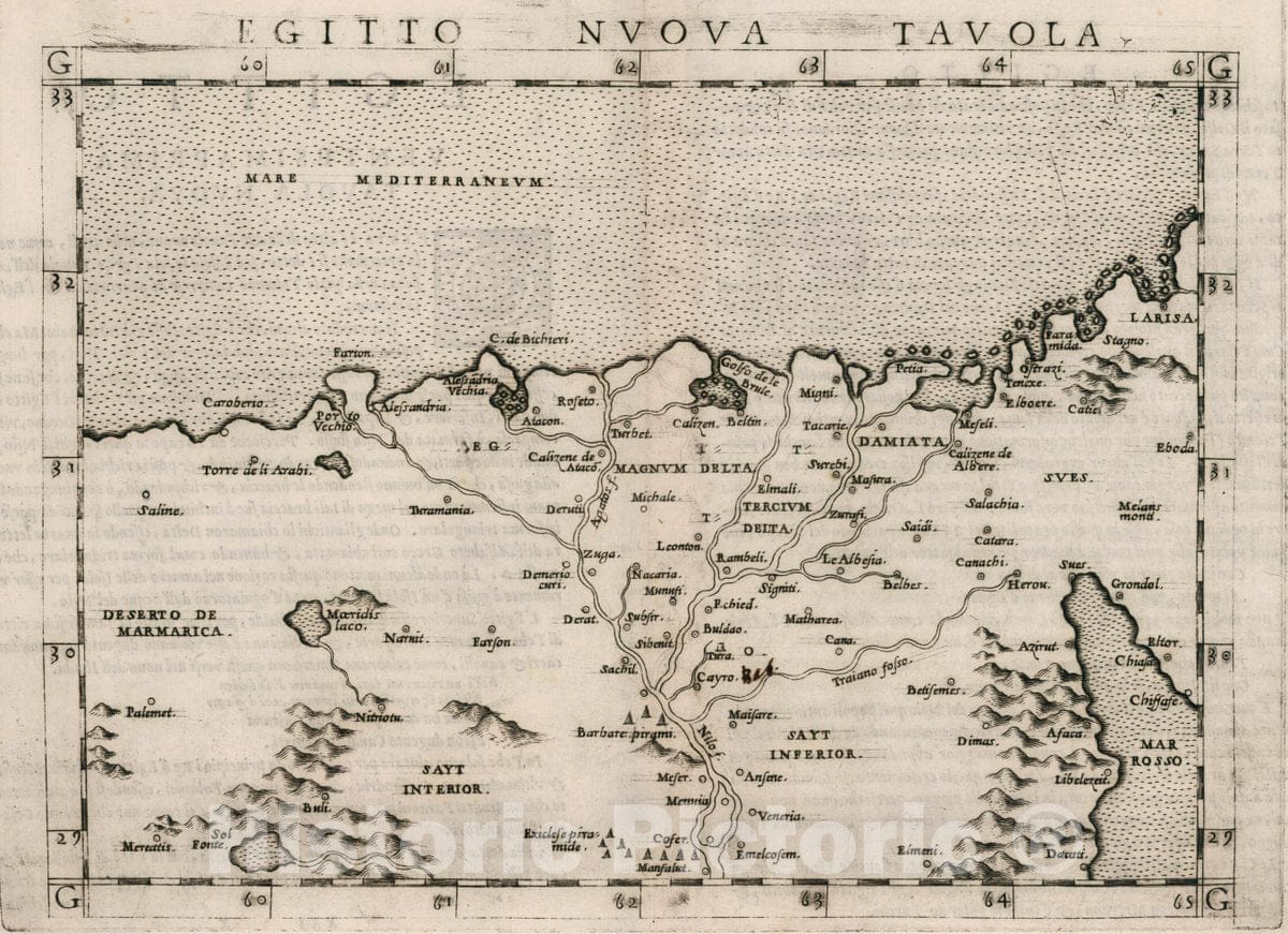 • .Historic Map : Egypt, , Africa Egitto Nvova tavola. Egitto, Ventesimaprima tavola nvova, 1561 Atlas , Vintage Wall Art