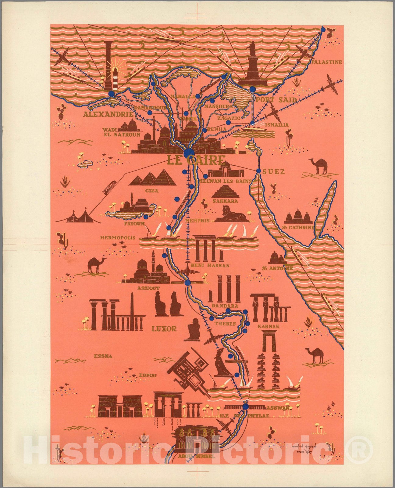 Historic Map : Egypt, Pocket Map, L'Egypte : Le pays du soleil. Moufid Sayed 1937 , Vintage Wall Art