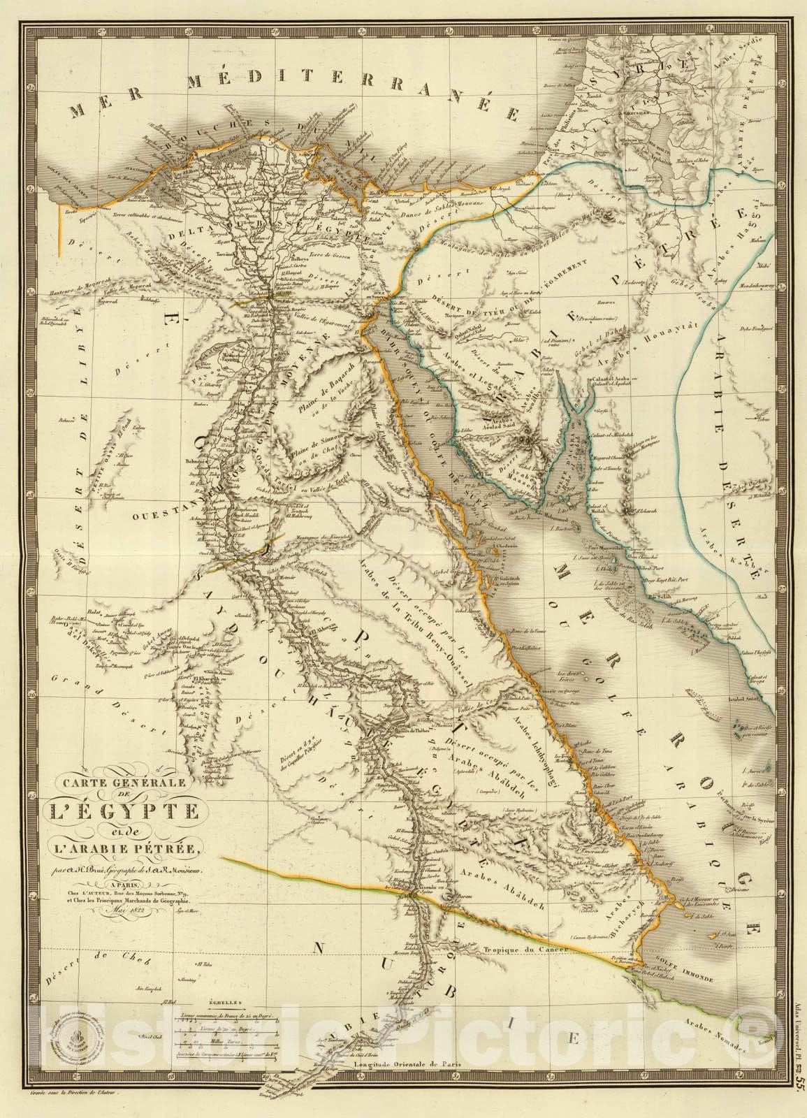 Historic Map : Egypt; Saudi Arabia, 1822 Egypte, Arabie Petree. , Vintage Wall Art
