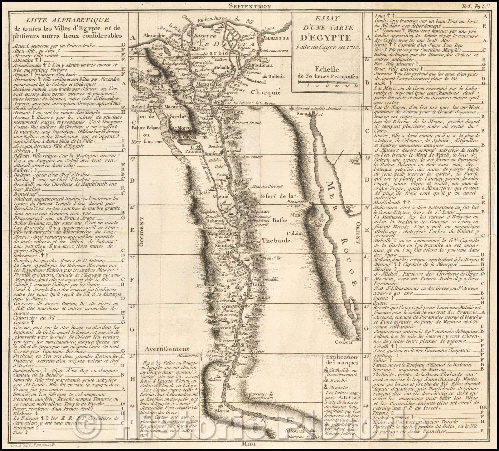 Historic Map - Essay D'Une Carte D'Egypte Faite au Cayre en 1715 / Map of a portion of Egypt, focused on the course of the Nile River, 1760 - Vintage Wall Art