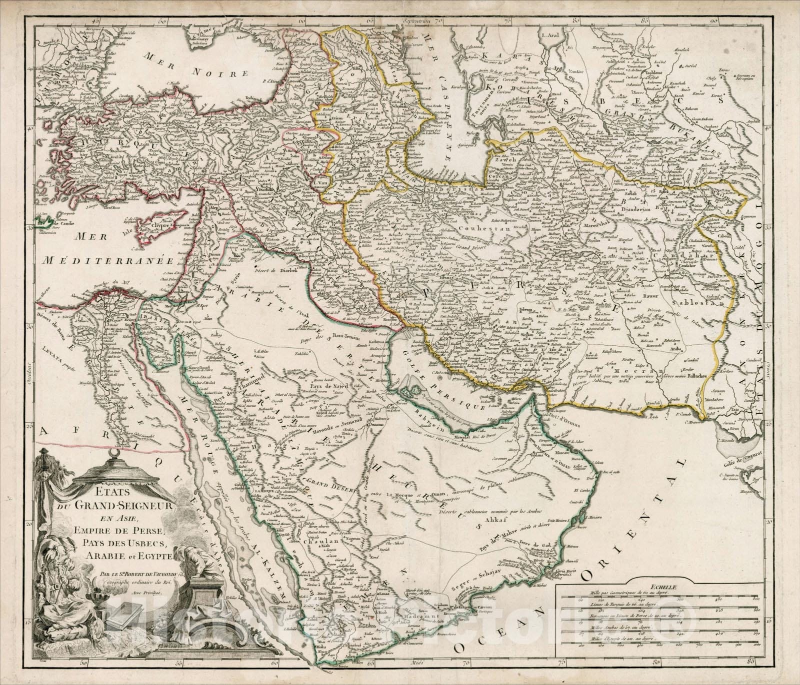 Historic Map : Etats Due Grand-Seigneur En Asie, Empire De Perse, Pays Des Usbecs, Arabie et Egypte , c1755, Didier Robert de Vaugondy, Vintage Wall Art
