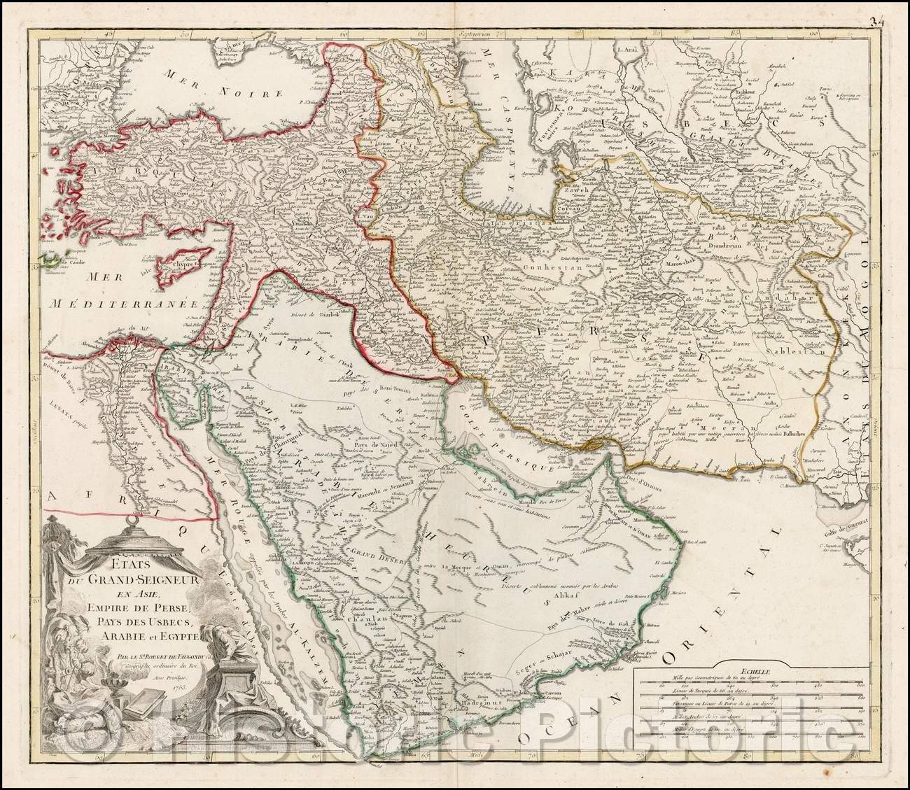 Historic Map - Etats Due Grand-Seigneur En Asie, Empire De Perse, Pays Des Usbecs, Arabie et Egypte, 1753, Didier Robert de Vaugondy - Vintage Wall Art