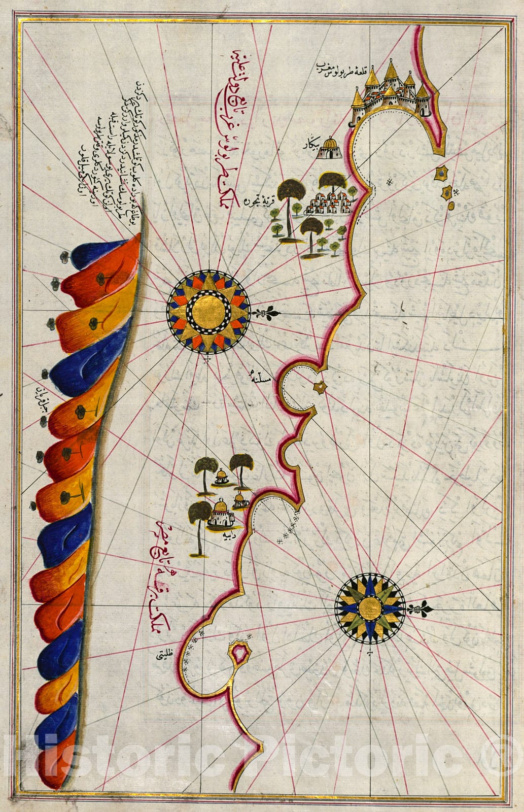 Historic Map : fol. 290a Libyan coastline from Tripoli east toward Egypt, 1700, Vintage Wall Decor