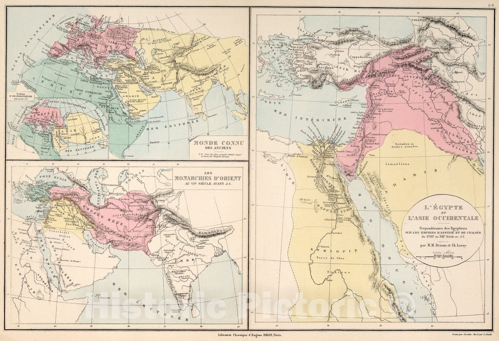 • .Historic Map : L'Egypte et L'Asie occidentale. Monde Connu. Monarchies d'Orient, 1886, Vintage Wall Art