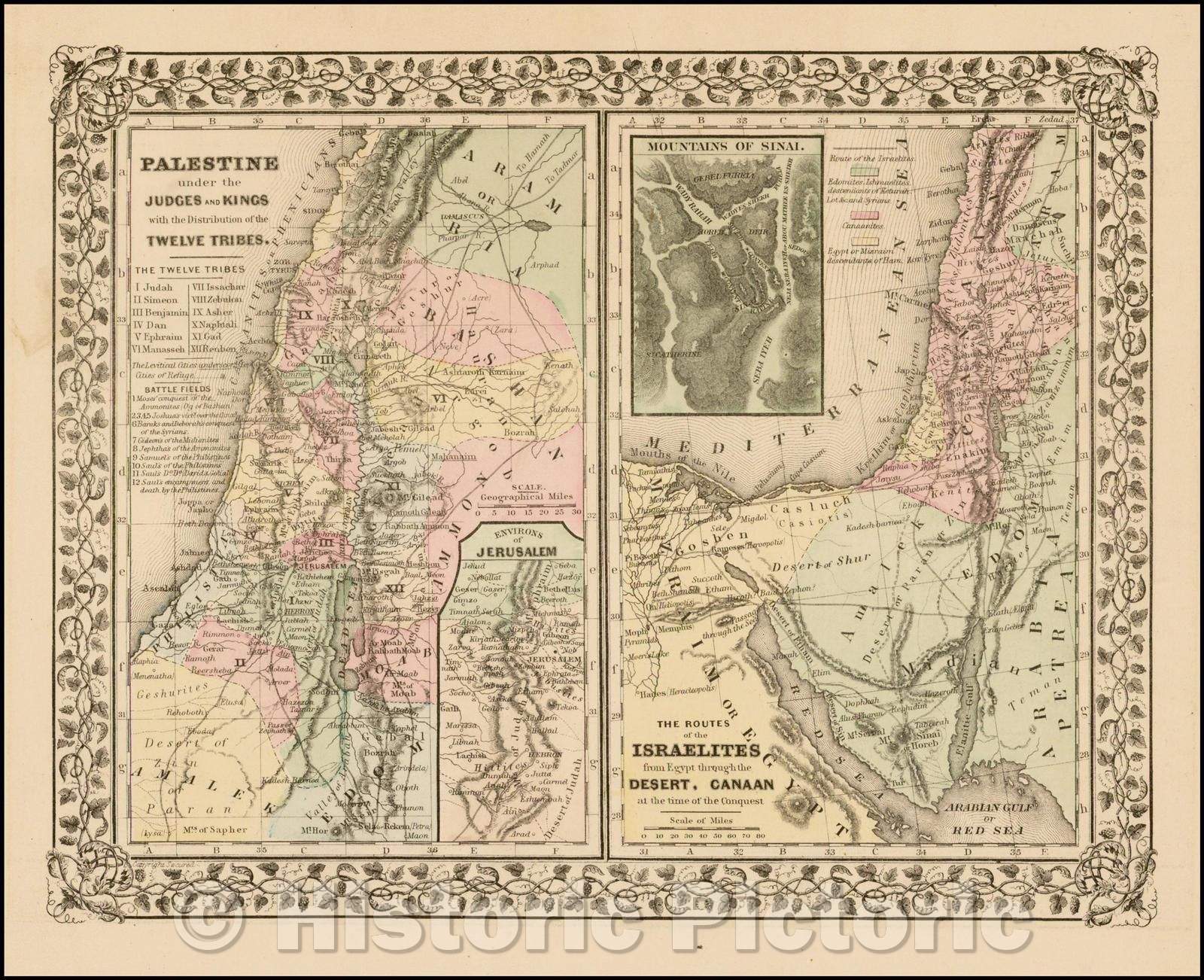 Palestine under the Judges and Kings with the Distributions of the Twelve Tribe (and) The Routes of the Israelites from Egypt, 1867