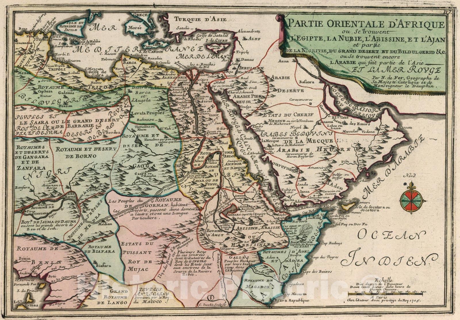 Historic Map : Partie Orientale d'Afrique ou se trouvent l'Egypt, la Nubie, l'Abissine, et l'Ajan., 1705, Vintage Wall Art
