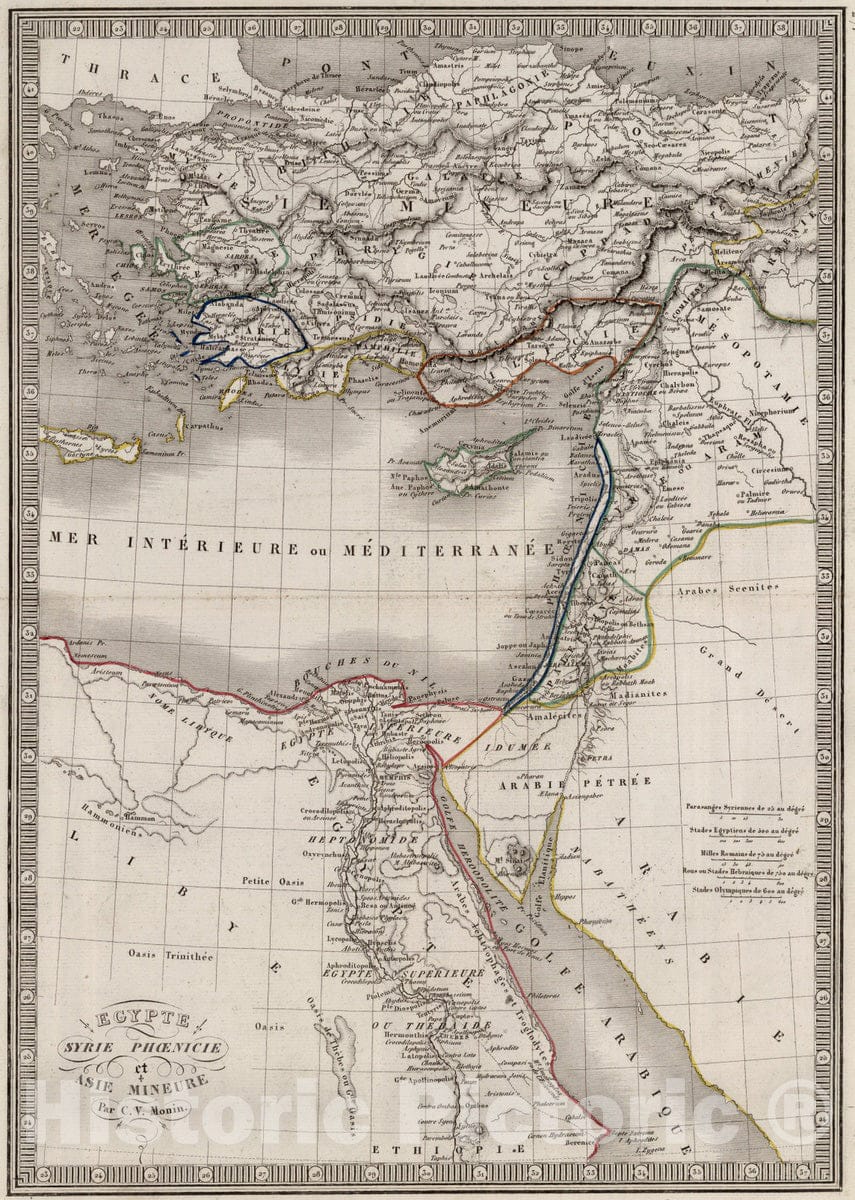 • .Historic Map : Turkey; Egypt; Syria; Israel, , Asia; Europe 1839 Egypte, Syrie Phoenicie et Asie Mineure. , Vintage Wall Art