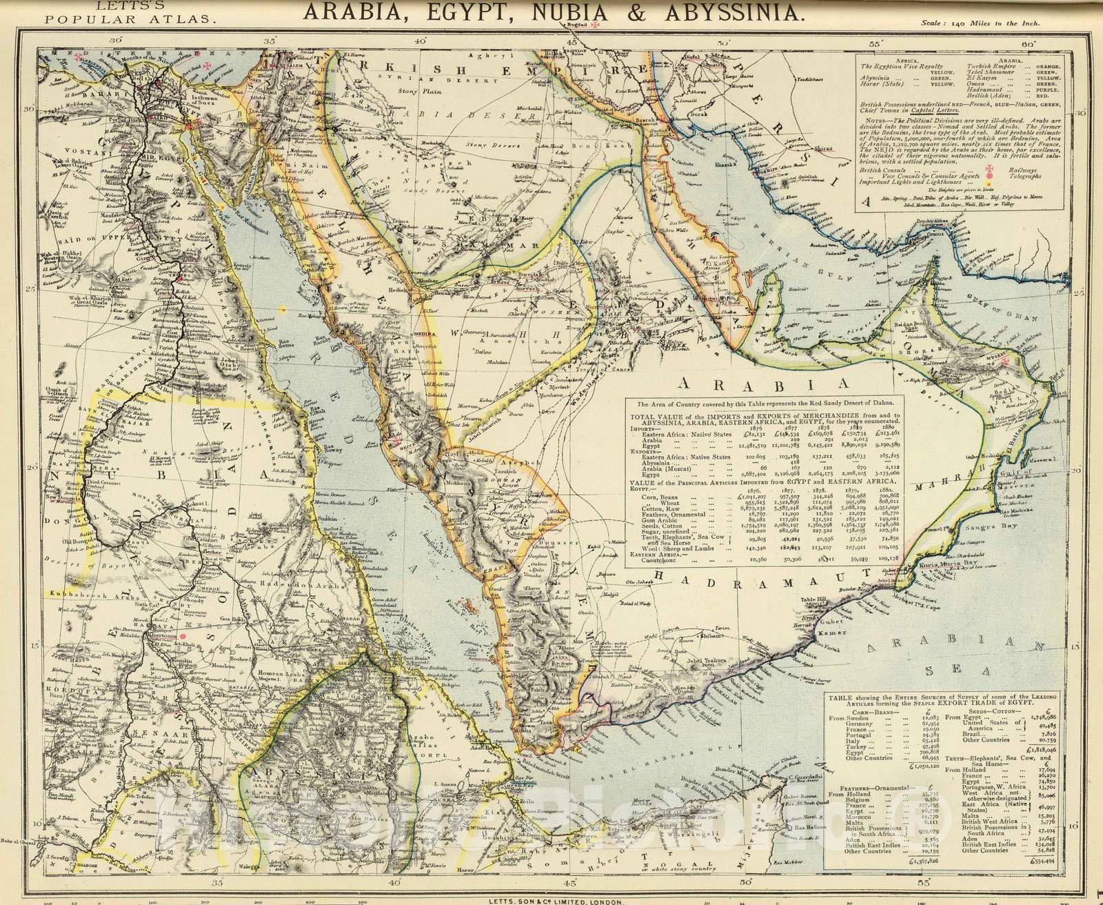 • Historic Map - World Atlas - 1883 Arabia, Egypt, Nubia, Abyssinia. - Vintage Wall Art