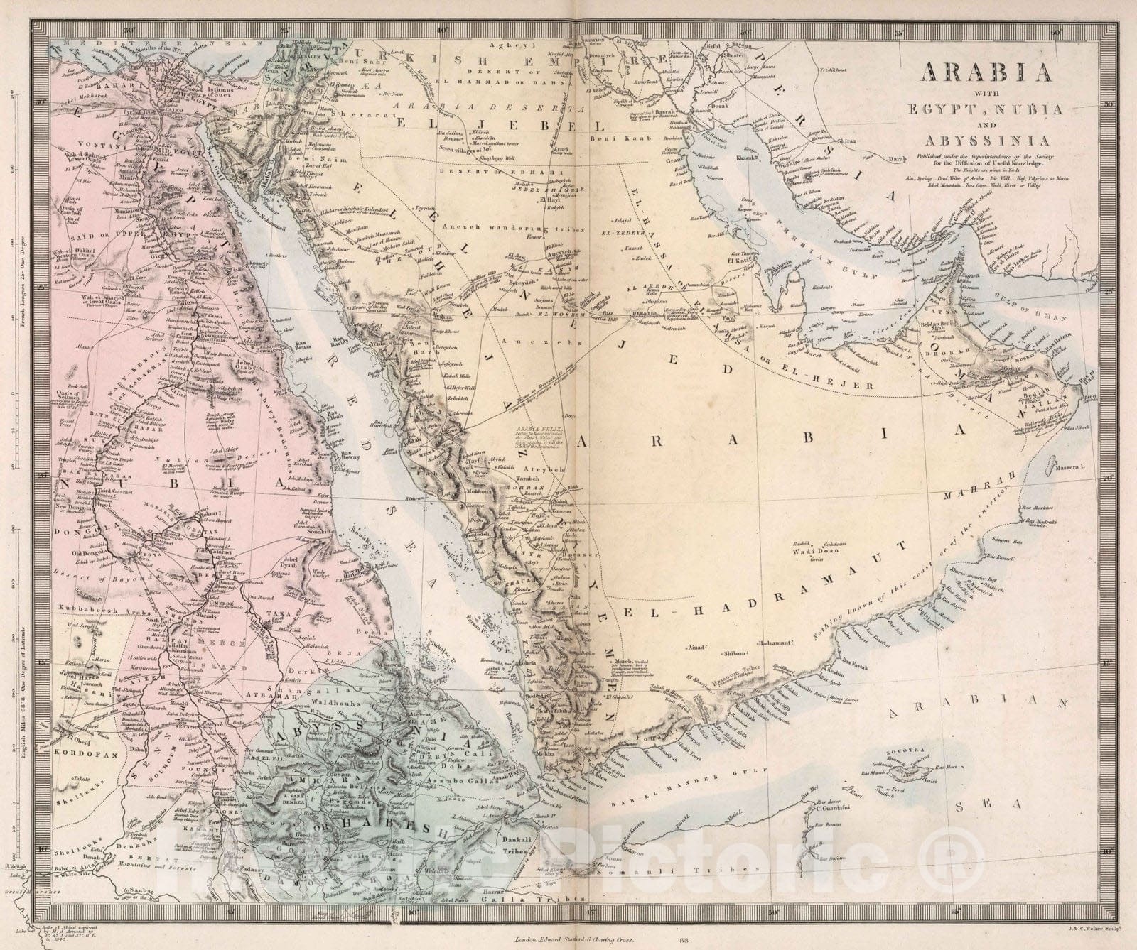 • .Historic Map : World Atlas Map, Arabia with Egypt, Nubia and Abyssinia 1856 - Vintage Wall Art