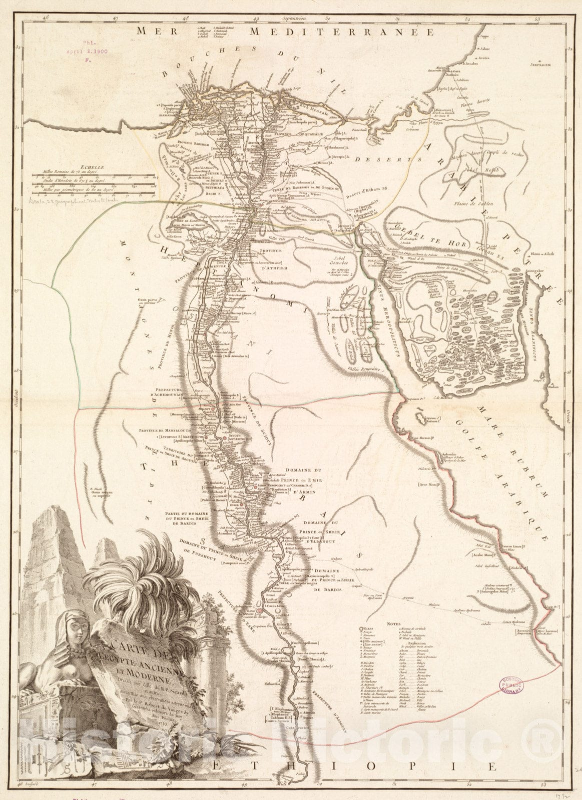 Historical Map, 1753 Carte de l'Egypte ancienne et Moderne : dressee sur Celle du R. P. Sicard, et autres assujetties aux observations astronomique, Vintage Wall Art