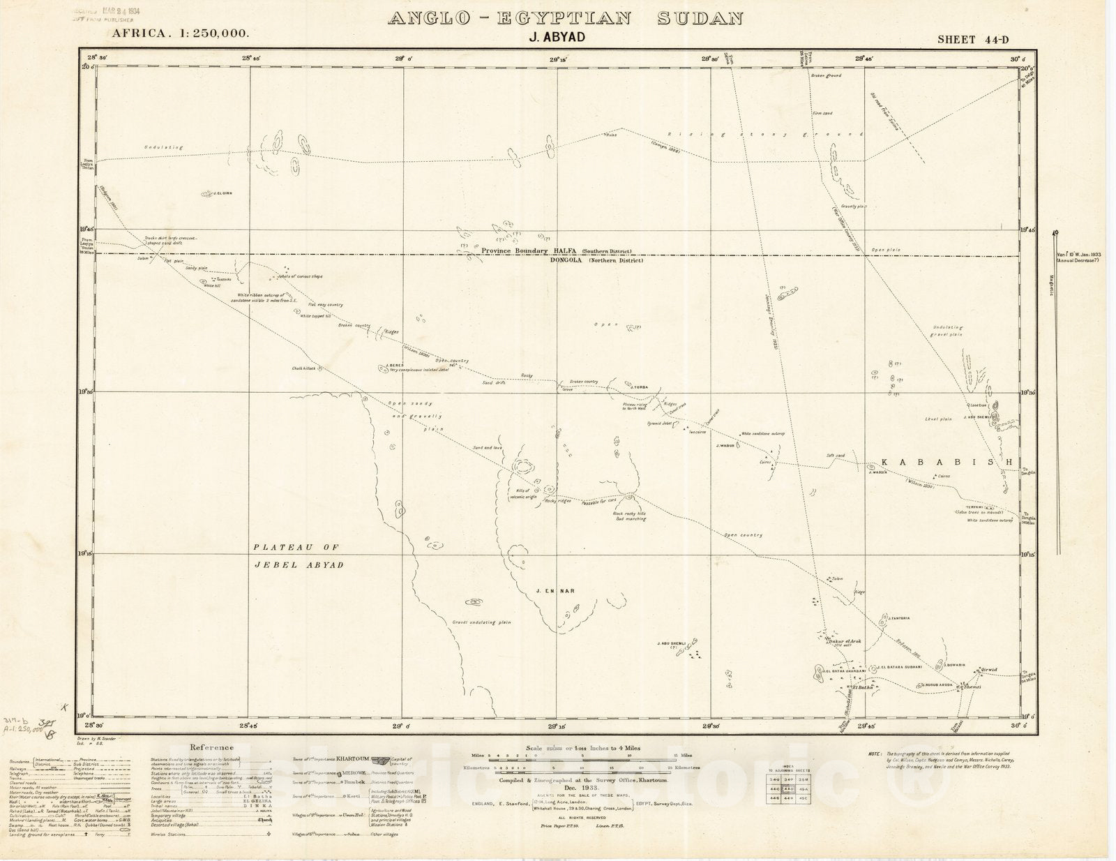 Map : J. Abyad, Anglo-Egyptian Sudan 1933, Africa 1:250,000, Anglo-Egyptian Sudan, J. Abyad, sheet 44-D , Antique Vintage Reproduction