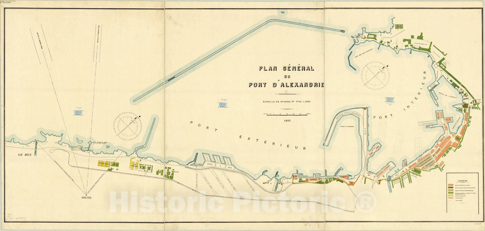• Map : Alexandria, Egypt 1907, Plan general du Port d'Alexandrie , Antique Vintage Reproduction