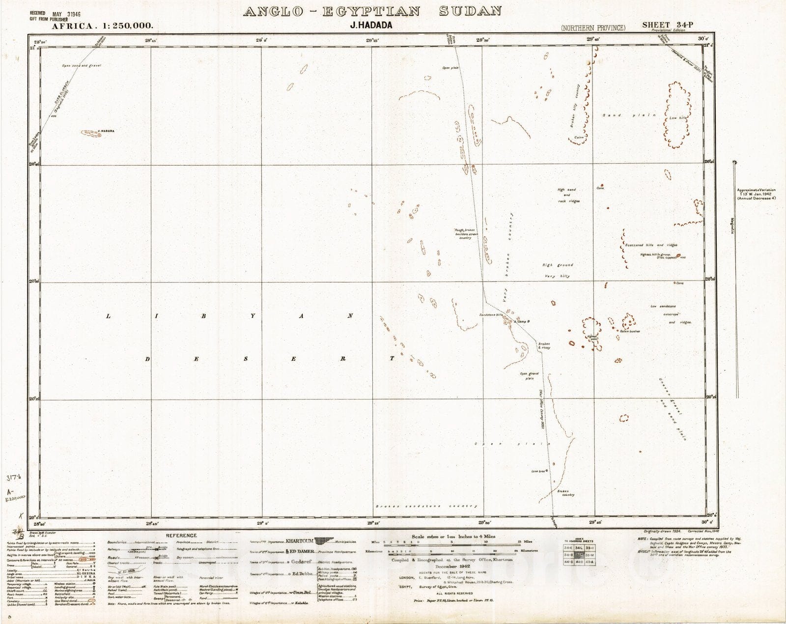 Map : Anglo-Egyptian Sudan 1942 1, Africa 1:250,000 , Antique Vintage Reproduction