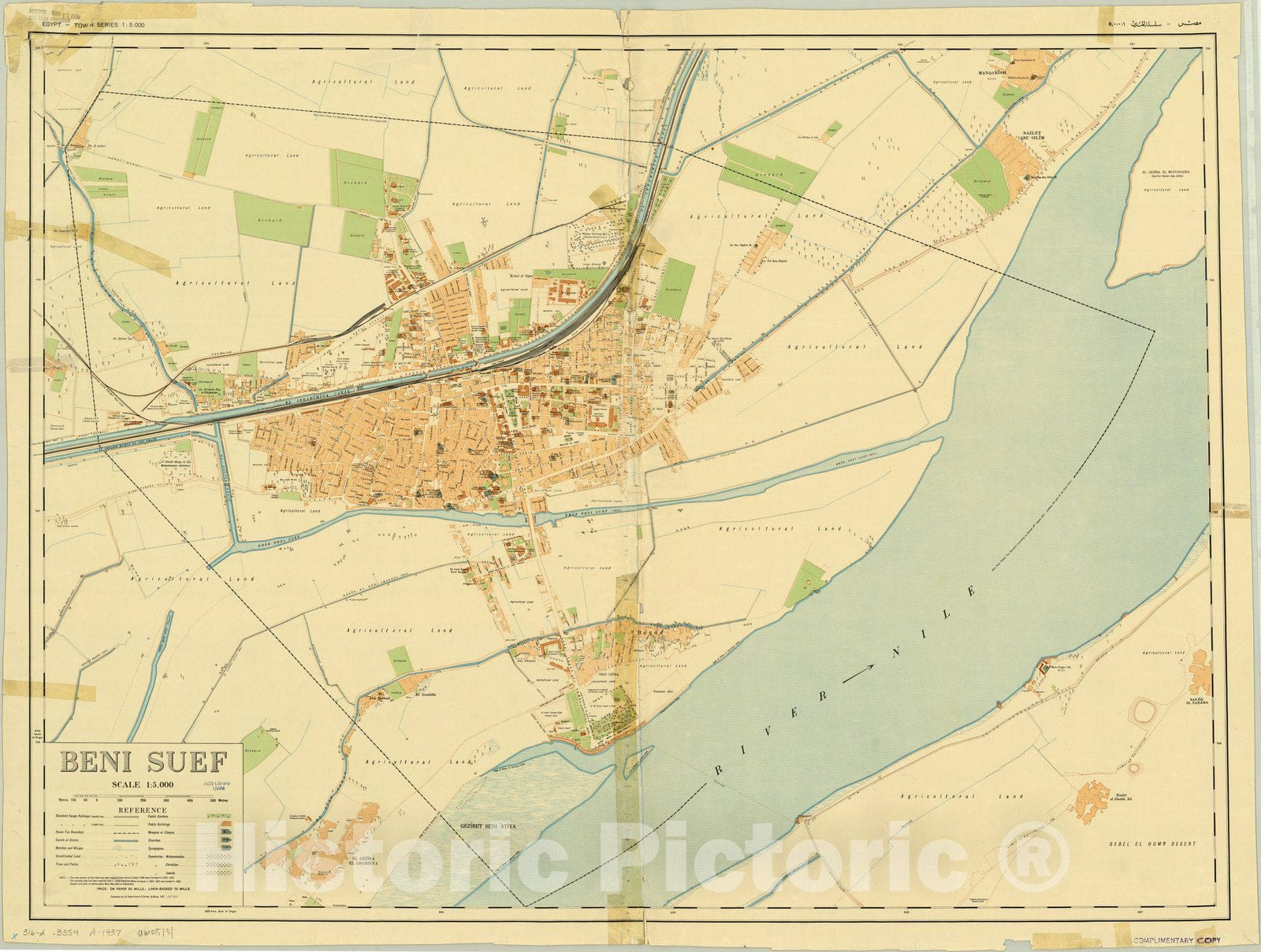 Map : Beni Suef, Egypt 1937, Egypt town series 1:5,000. Beni Suef., Antique Vintage Reproduction