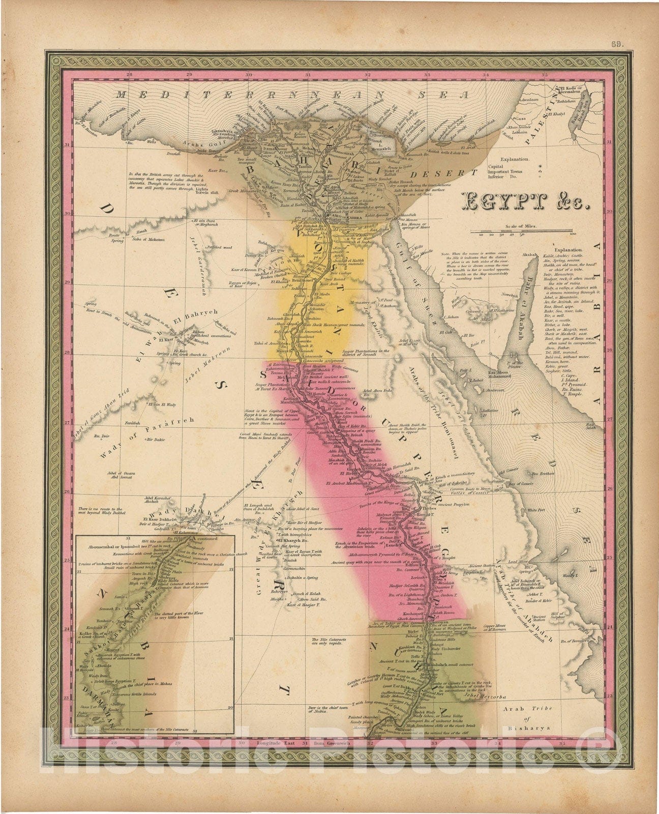 Historic Map : Egypt 1847 , A New Universal Atlas of the World , Vintage Wall Art
