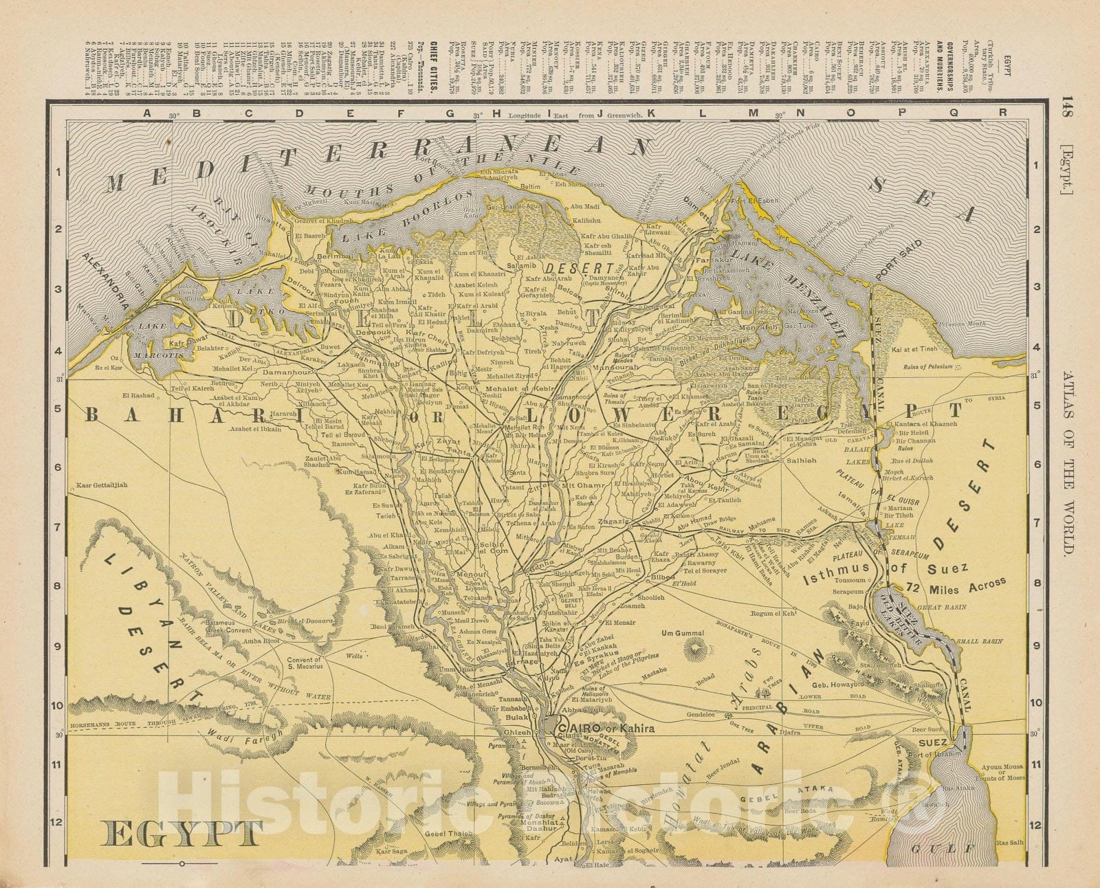 Historic Map : Egypt 1900 , Universal Atlas World , v2, Vintage Wall Art