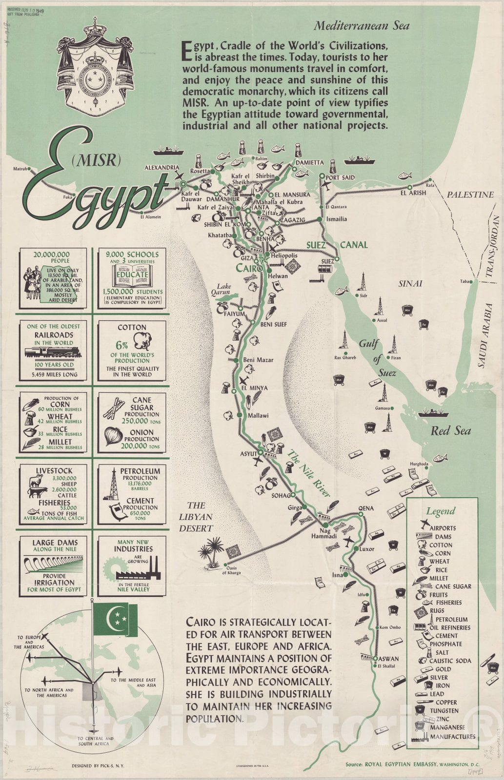 Map : Egypt 1949, Egypt (MISR) , Antique Vintage Reproduction