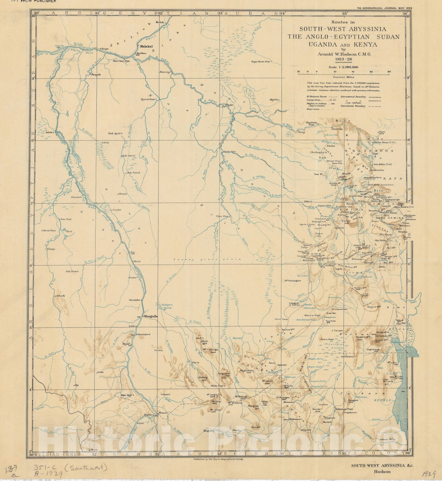 Routes in south-west Abyssinia, the Anglo-Egyptian Sudan, Uganda and Kenya / by Arnold W. Hodson, C.M.G. 1923-26