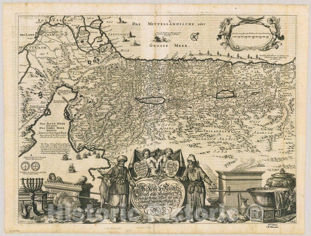 Die Reise der Kinder Israel auf Aegypten, durchs rothe Meer, ihr Umschweiff durch die Wusten u. Eingang ins gelobte Land / J. Sandrart sculpsit