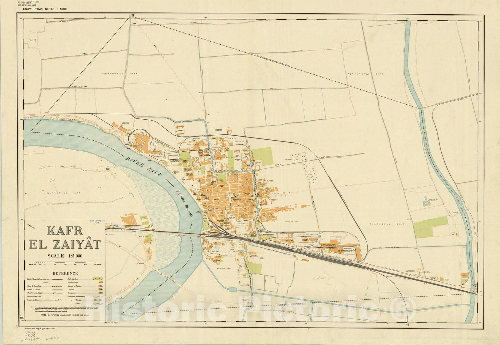 Map : Kafr el Zaiya?t, Egypt 1945, Egypt - town series 1:5,000. Kafr el Zaiya, Antique Vintage Reproduction