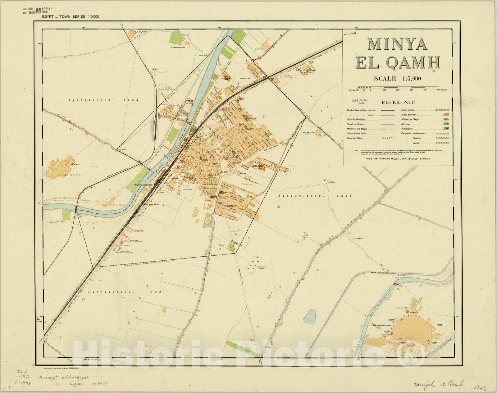 Map : Minya el Qamh?, Egypt 1946, Egypt-Town Series 1:5,000. Minya el Qamh?, Antique Vintage Reproduction