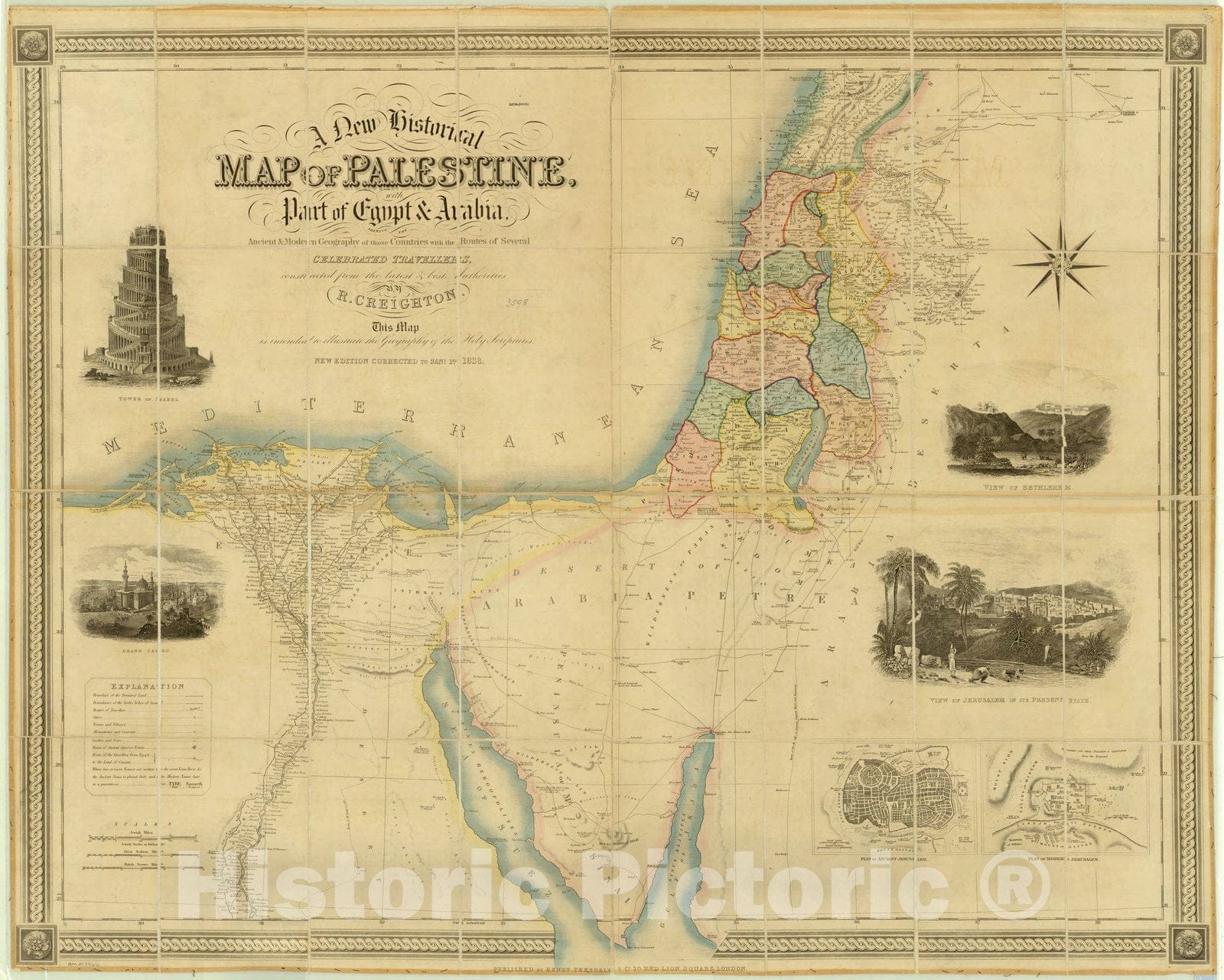 A new historical map of Palestine, with part of Egypt and Arabia, shewing the ancient and modern geography of those countries with the routes of several celebrated travellers constructed from the latest & best authorities by R. Creighton / Published by