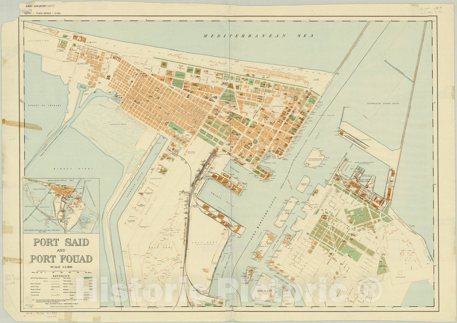 Map : Port Said and Port Fouad, Egypt 1937, Egypt town series 1:5,000. Port Said and Port Fouad , Antique Vintage Reproduction