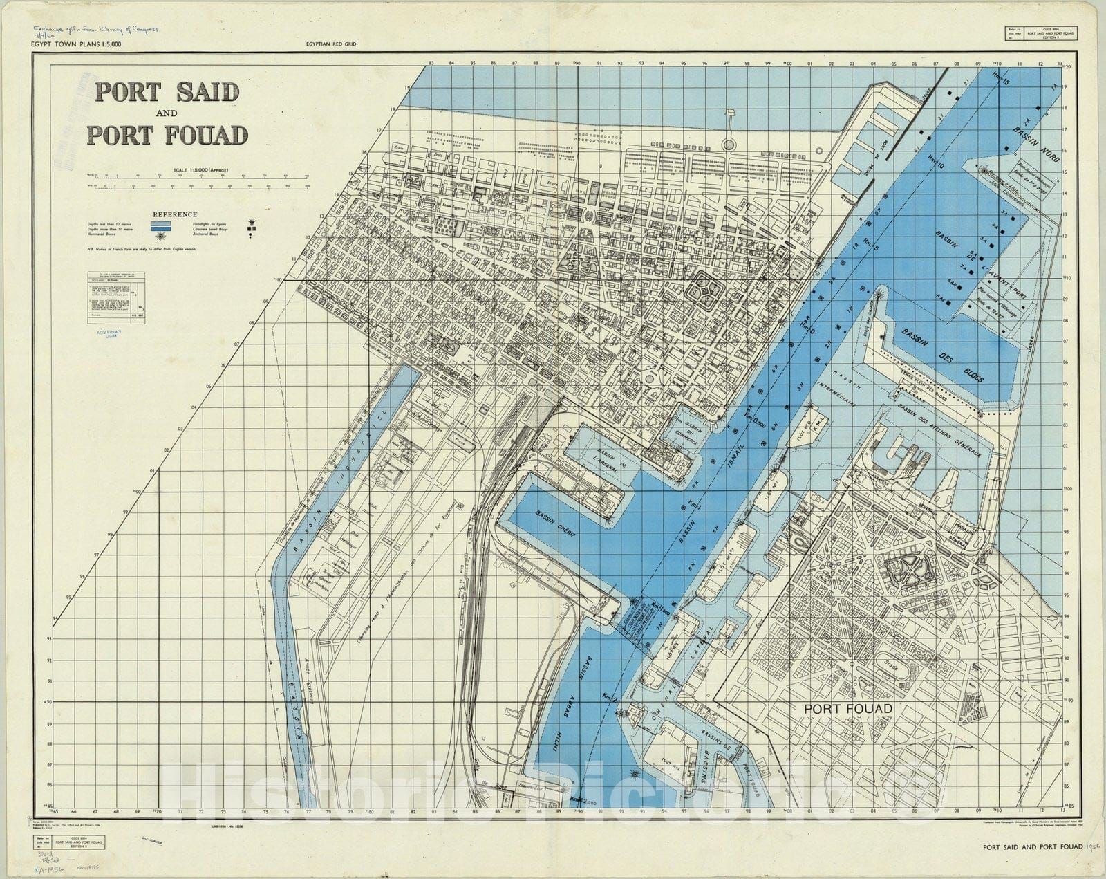 Map : Port Said and Port Fouad, Egypt 1956, Egyptian town plans 1:5,000. Port Said and Port Fouad, Antique Vintage Reproduction