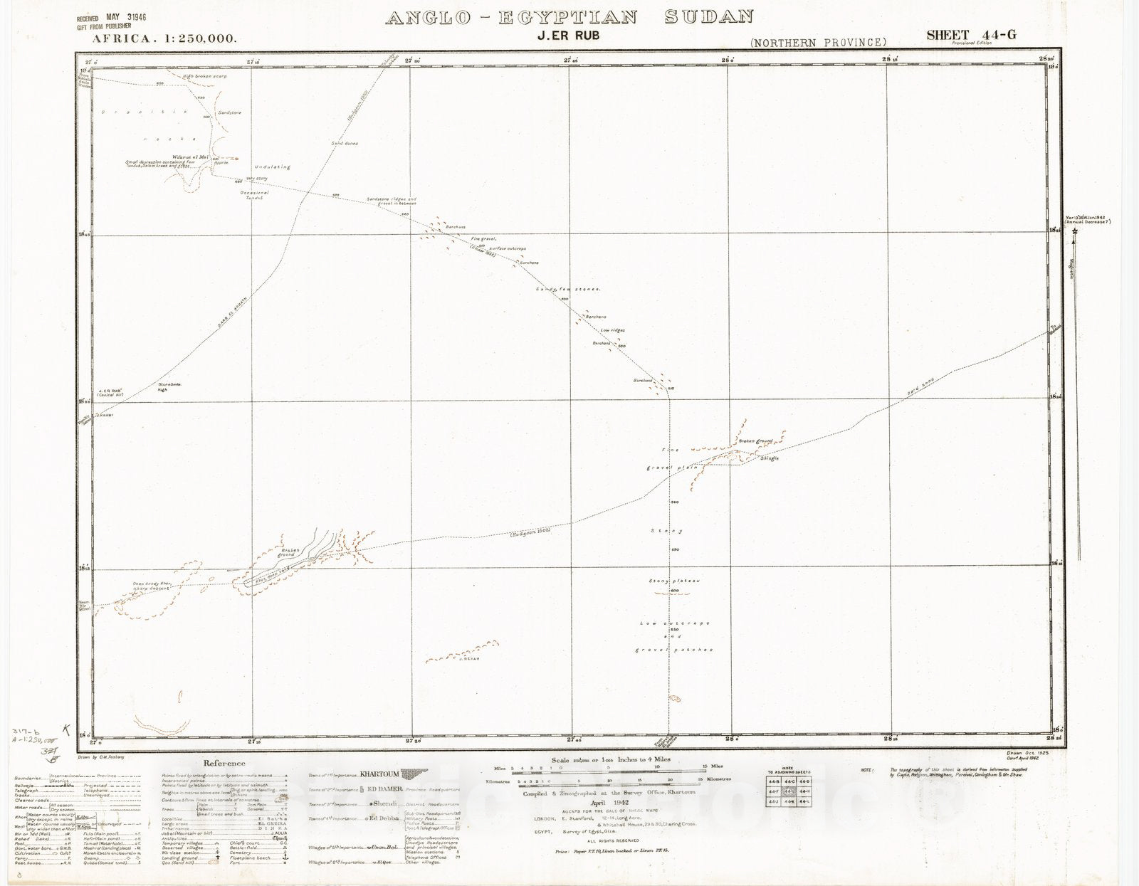 Map : J. er Rub, Anglo-Egyptian Sudan 1942, Africa 1:250,000, Anglo-Egyptian Sudan, J. er Rub sheet 44-G , Antique Vintage Reproduction