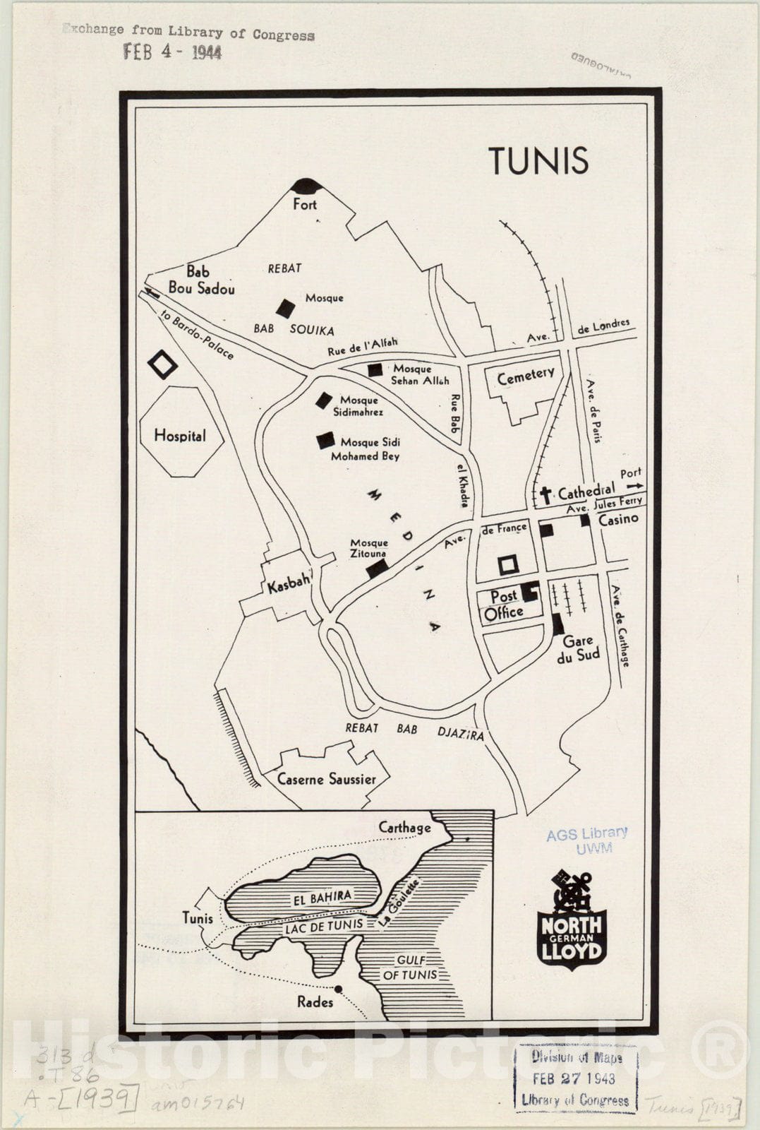 Map : Tu?nus, Egypt 1939, Tunis, Antique Vintage Reproduction