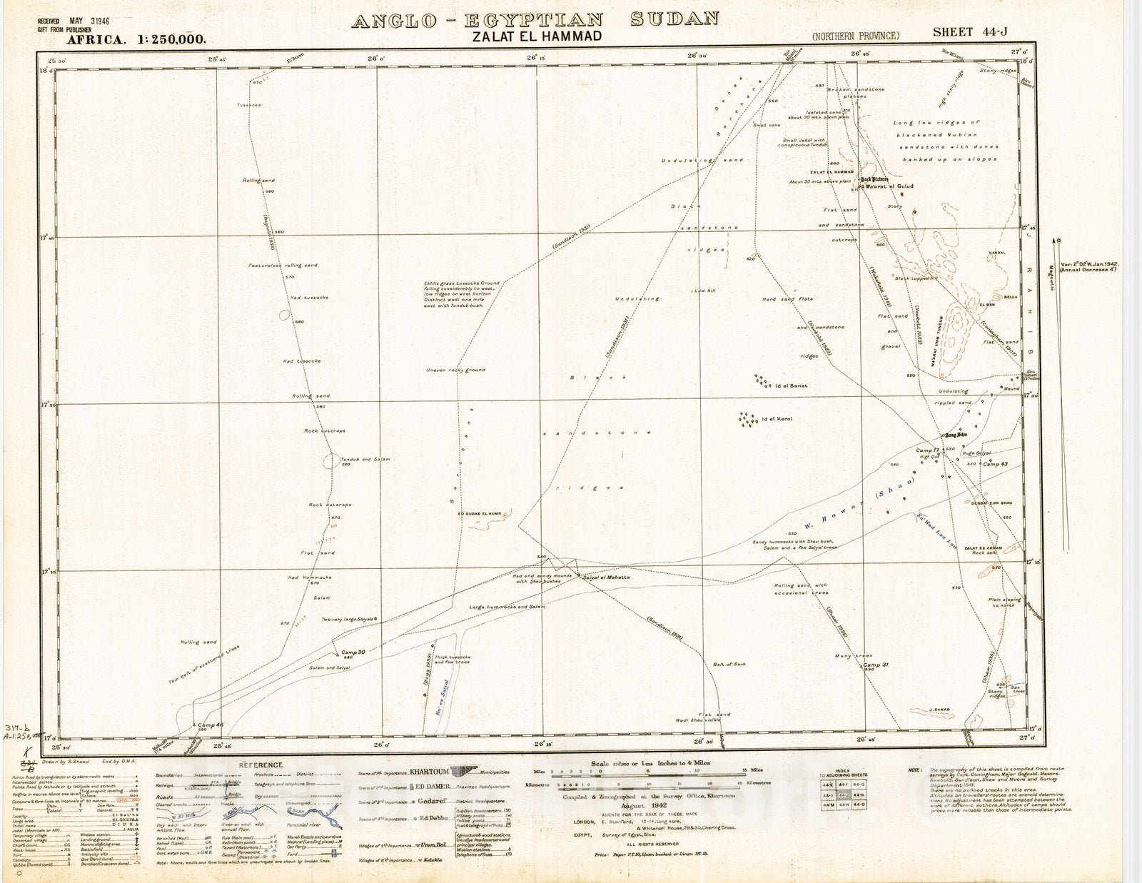 Map : Zalat el Hammad, Anglo-Egyptian Sudan 1942, Africa 1:250,000, Anglo-Egyptian Sudan, Zalat el Hammad, sheet 44-J , Antique Vintage Reproduction