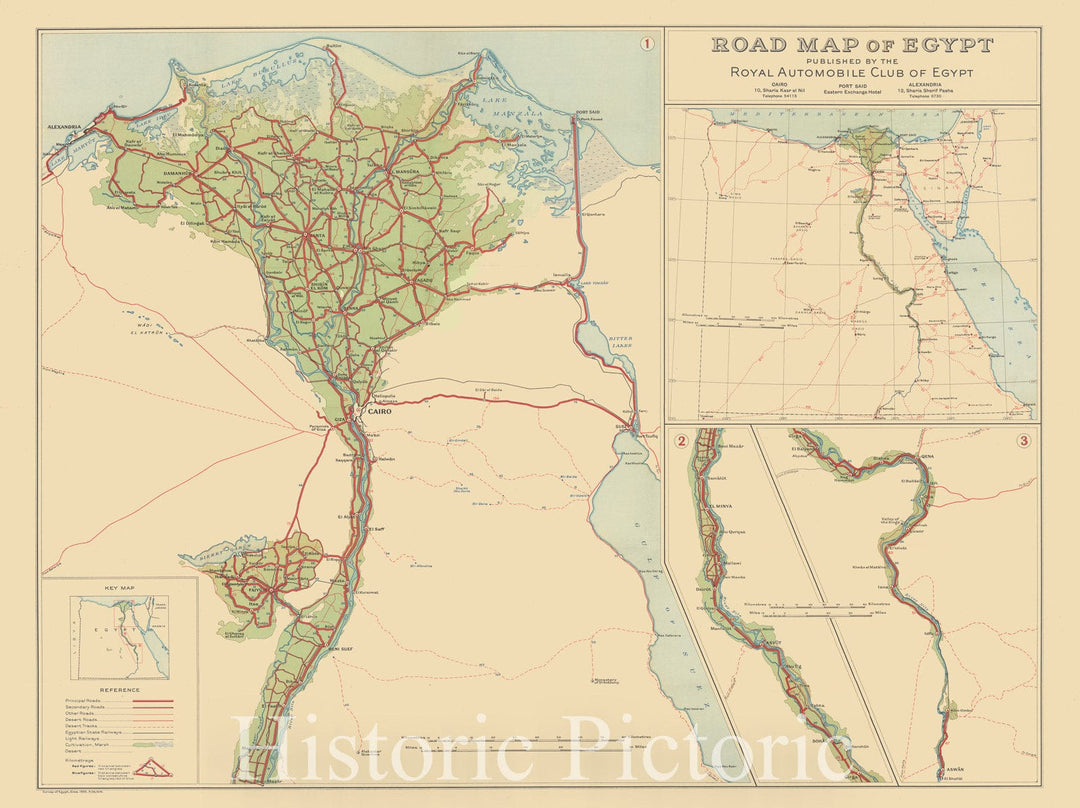 Historic Map : Road map of Egypt, 1936, Vintage Wall Decor
