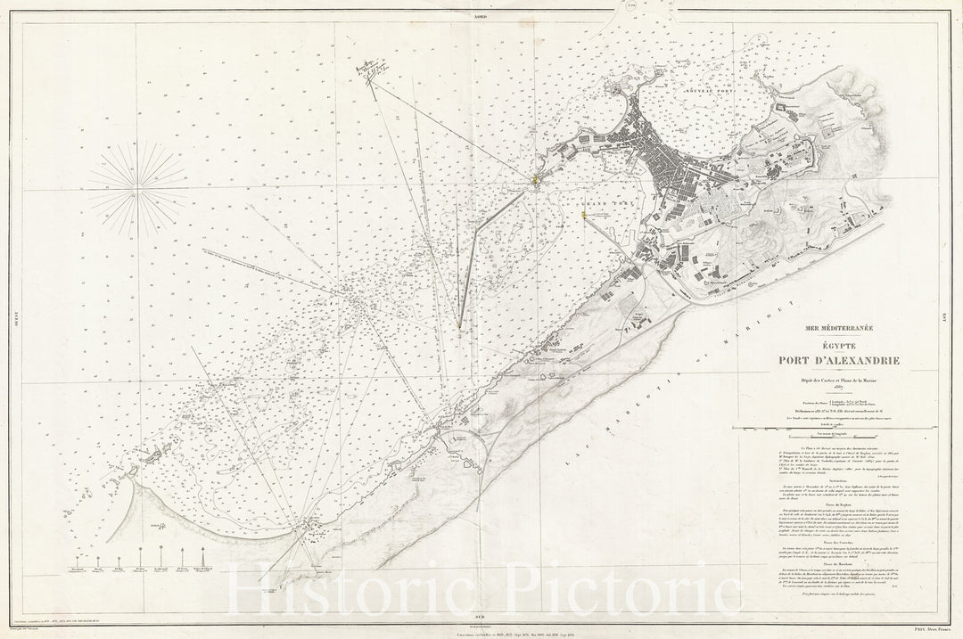 Historic Map : Depot de la Marine Nautical Chart or Map of Alexandria, Egypt, 1867, Vintage Wall Art