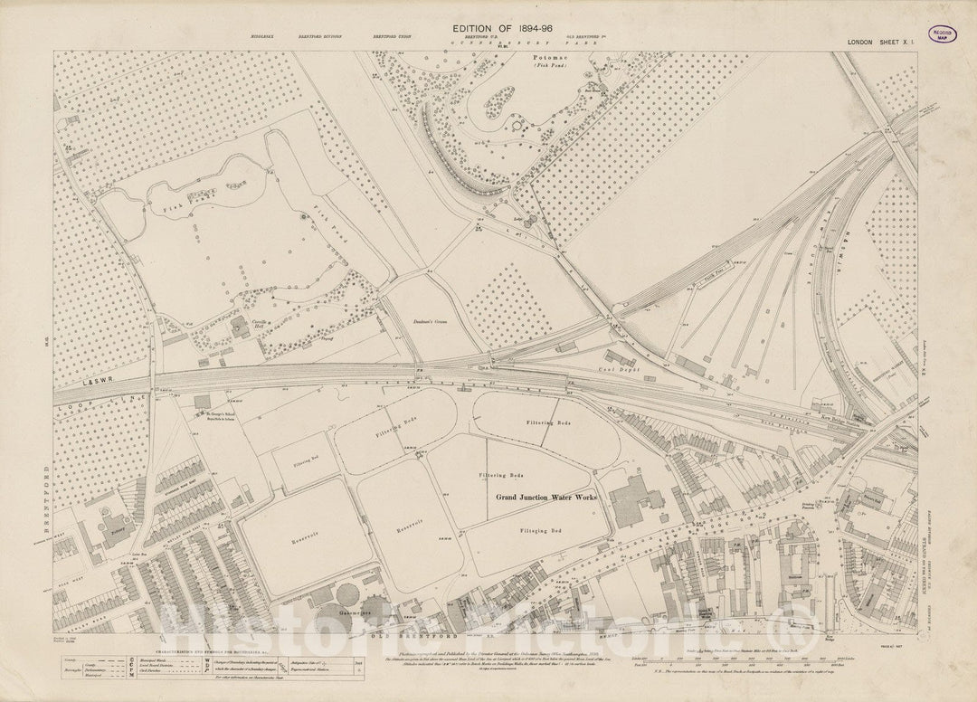 Historic Map : London (England), City Atlas Map, London Sheet X.33 1895 - Vintage Wall Art