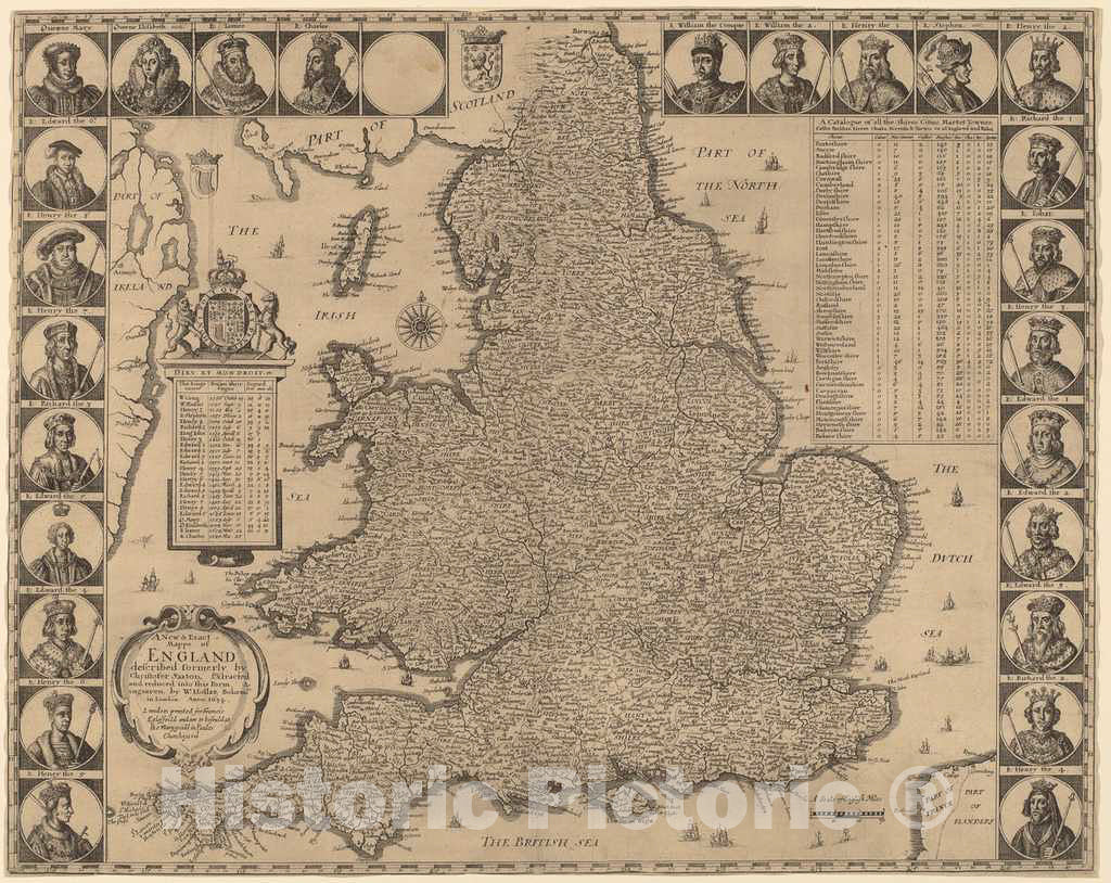 Art Print : Wenceslaus Hollar, A New and Exact Mappe of England, 1644 - Vintage Wall Art