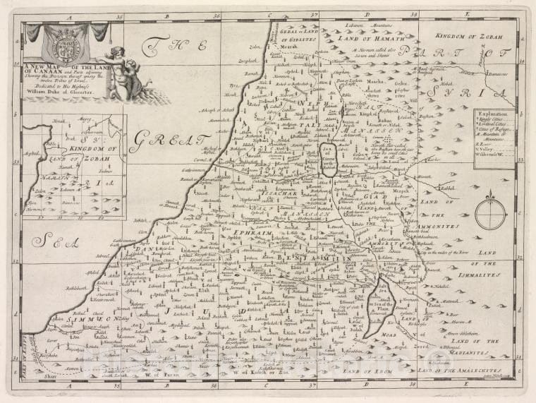 Historic 1700 Map - A New Map Of The Land Of Canaan And Part Adjoining, Shewing The Division Thereof Among The Twelve Tribes Of Israel. - England - Vintage Wall Art
